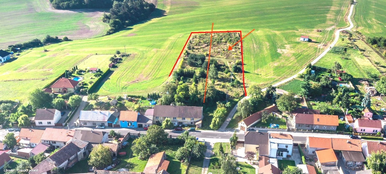 Prodej rovinatého pozemku na RD 4 201 m2 v obci Libovice u Slaného. Šířka pozemku 26 m . Pozemek přímo sousedí s obecními komunikacemi. Podmínkou obce je vybudování přístupové cesty s napojením na hlavní silnici. Dle územního plánu obce část pozemku o ploše 1600 m2 je určena pro výstavbu rodinných domů, ostatní je vedena jako zahrada + orná půda.